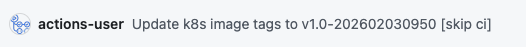 git commit -m "Update k8s image tags to ${{ env.IMAGE_TAG }} [skip ci]"